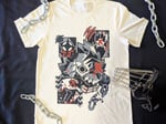 due to the nature of the silkscreen printing, over time the graphic of the shirt can crack.
